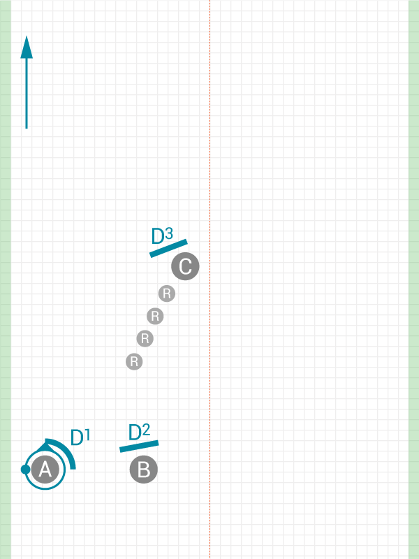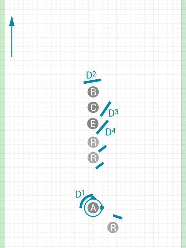 Combine a number of options here and play with full defence; this drill will teach you how to combine cuts when running Cyclone, and help you to develop the decision making required to use Cyclone in a game.