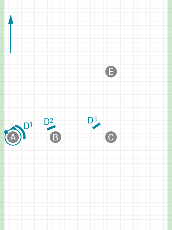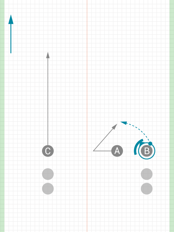 If the initial cut isn't available, turning to cut to the break side is a fantastic clearing cut. In this pattern, we add another option, a deep strike, which is ideal when cutting in isolation.