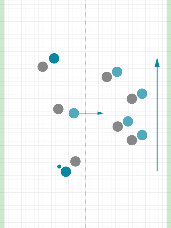 Show and practice the basic concept of "clearing" out of one part of the pitch in order to make space for other team mates to run into and catch a pass.