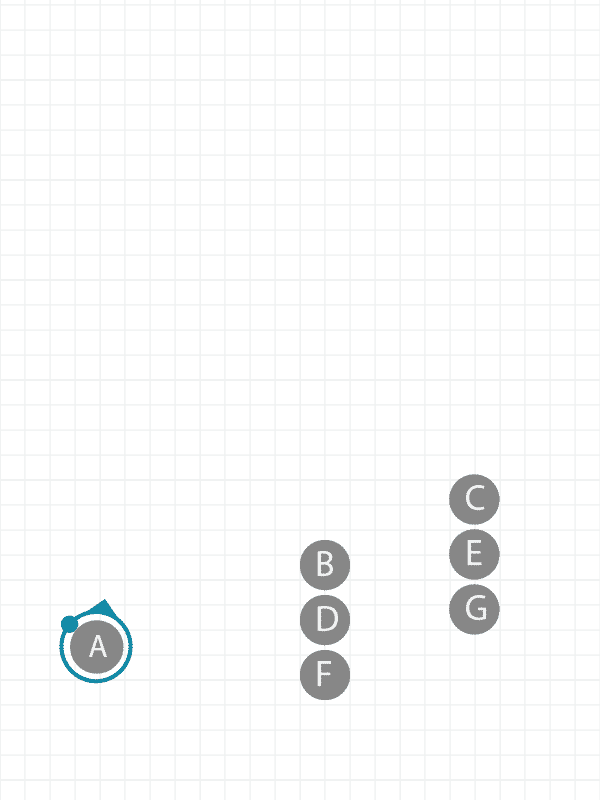 This pattern is a staple in ultimate, and worth practicing. Often referred to as a ‘V’ cut due to the sharp change of direction.